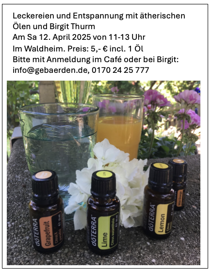 Workshop - Einführung in die Nutzung ätherischer Öle am 12.4. 11:00 Uhr | |