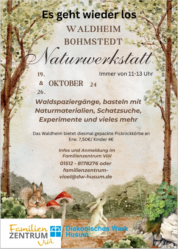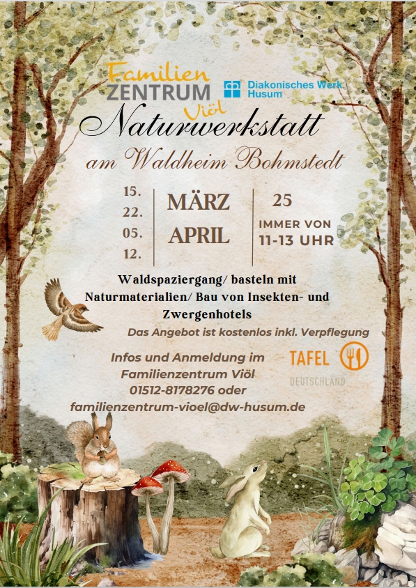 Naturwerkstatt mit dem Familienzentrum Viöl am 15.3., 22.3., 5.4., 12.4. immer 11:00 Uhr | |